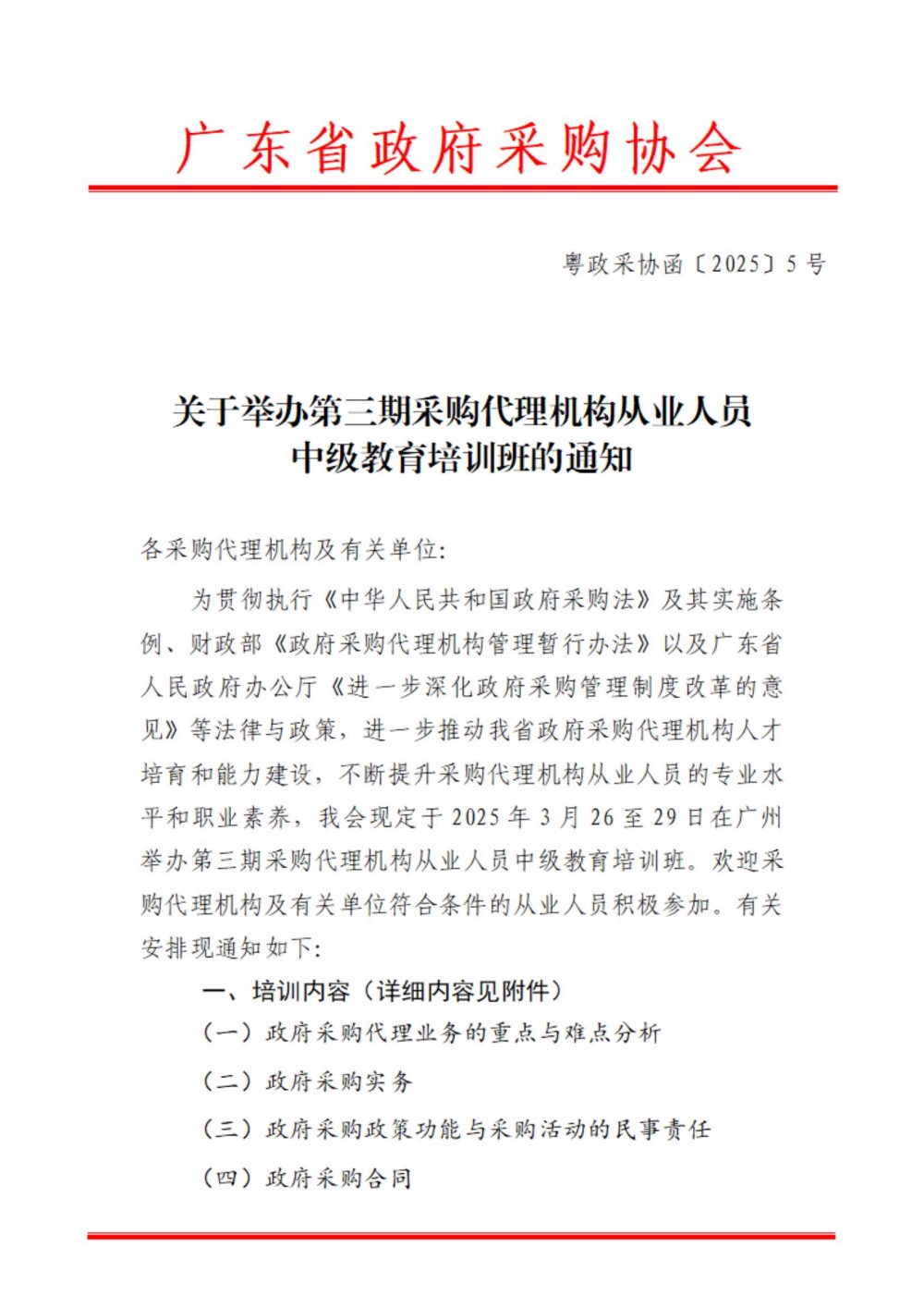 转 ▎关于举办第三期采购代理机构从业人员中级教育培训班的通知