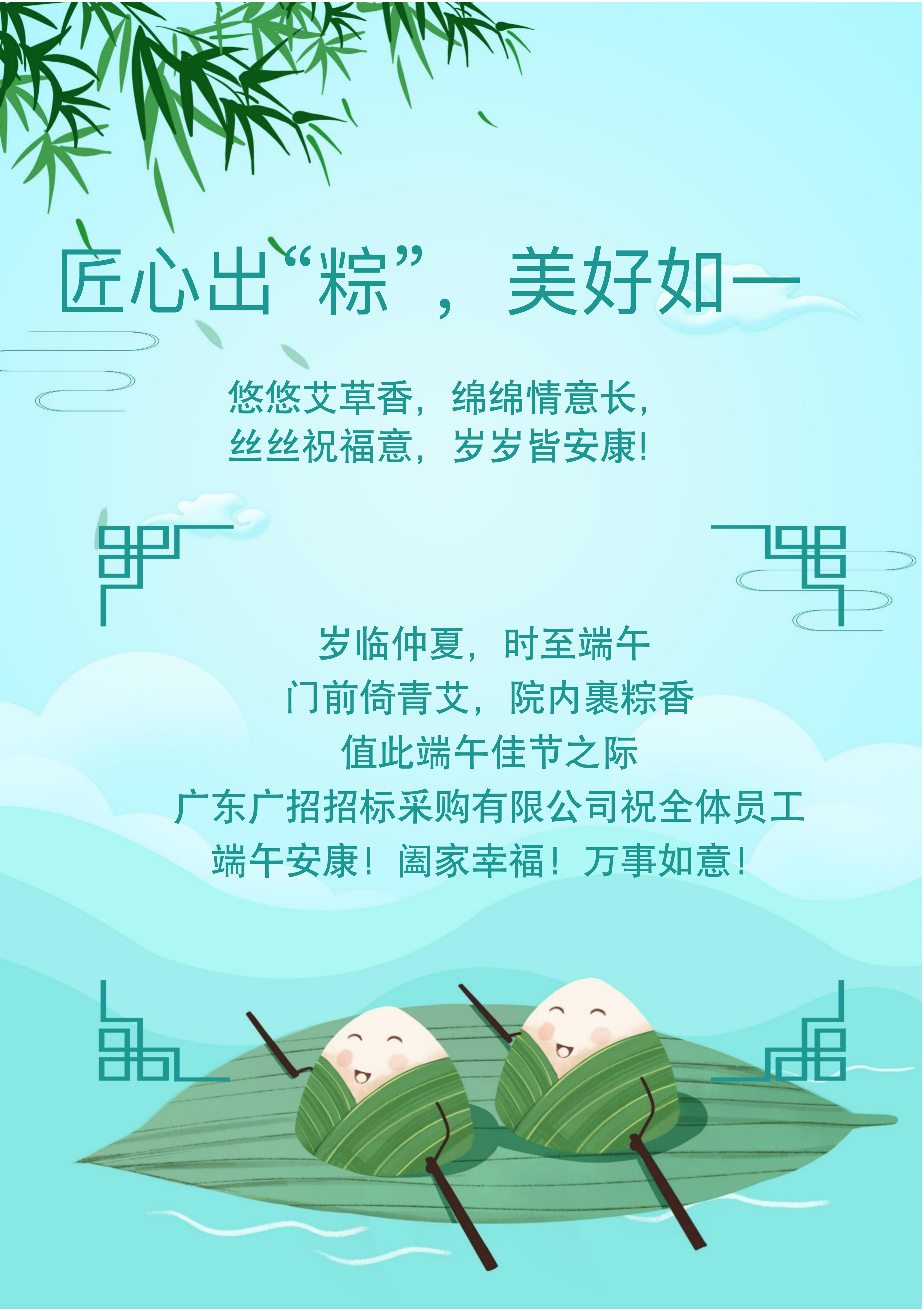 岁临仲夏,时至端午 门前倚青艾,院内裹粽香 值此端午佳节之际 广东广招招标采购有限公司祝全体员工 端午安康!阖家幸福!万事如意!