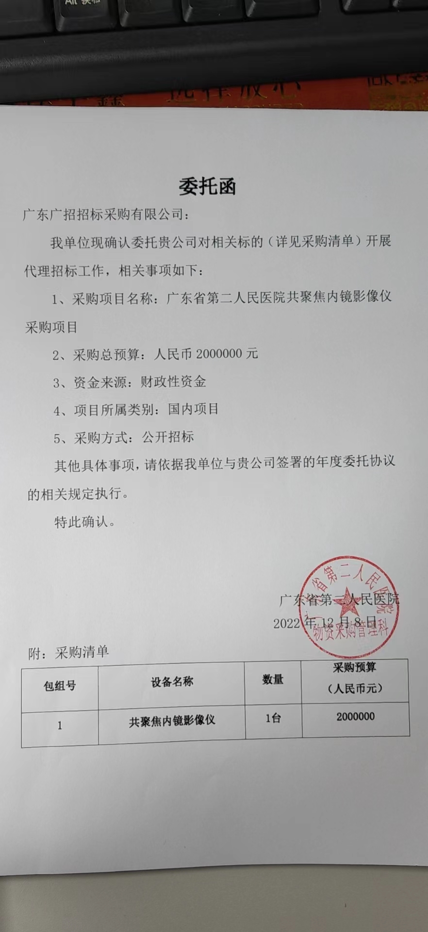 项目名称:广东省第二人民医院共聚焦内镜影像仪采购项目